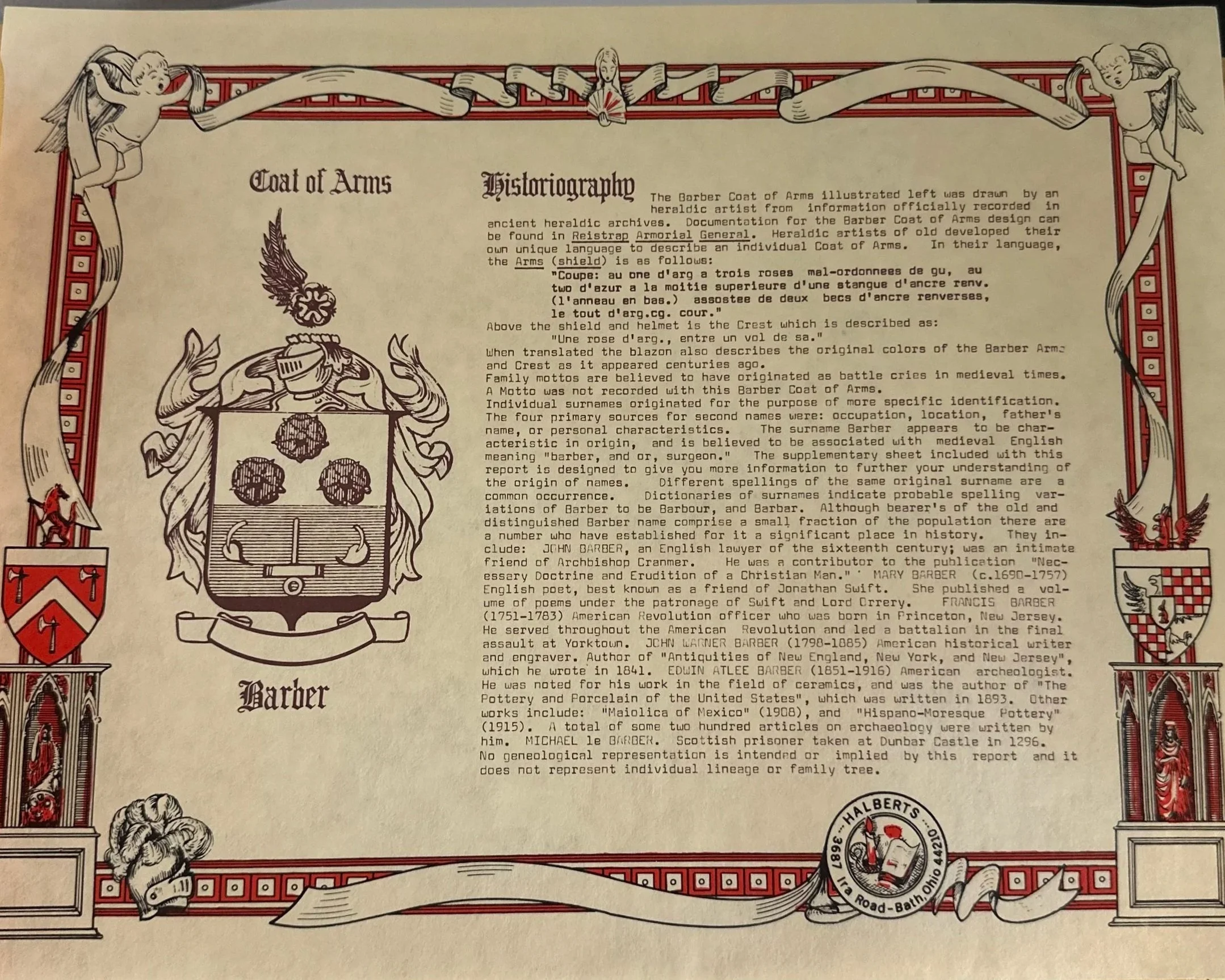 And there was a certificate for the Barber coat of arms. It’s red and yellow, fleurs-di-lis in a triangle. No animals. We’re loyal, it says. Steadfast. It mentions several famous Barbers, dating back to the 1200s, and get this: one of them is called John Barber and he was in the clergy connected to the Great Matter of Henry VIII. And I get this idea—what if I could trace my lineage back to some connection with Anne Boleyn? What if the reason I’m so obsessed with the late middle ages, with early modern England, is because I’m from there? What if my mind doesn’t remember, but my spirit does? My DNA?